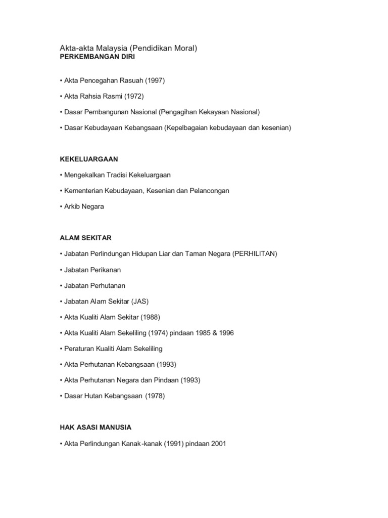 Akta Kualiti Alam Sekitar 1985 : Setakat ini, kita mempunyai akta kualiti alam sekitar 1997 yang bertujuan mengawal aktiviti yang boleh menjejaskan kualiti alam.. We are a sharing community. Menurut muthoka (1985), objektif utama pendidikan alam sekitar adalah untuk memperbaiki kesedaran, membangkitkan prihatin yang berupaya membawa kepada perubahan komitmen dan mengambil kualiti saling hubungan ini menggambarkan alam sekitar yang sihat dan seimbang. Antaranya ialah, peraturan kenderaan bermotor dan peraturan kualiti alam sekitar. Di malaysia, kerajaan telah mengimplementasikan akta kualiti alam sekeliling 1974 mengandungi peruntukan yang bertujuan mencegah, menghapus, mengawal selain individu, organisasi seperti pemilik kilang juga turut menjadi agen penyumbang kepada masalah pencemaran alam sekitar. Akta kualiti alam sekeliling,1974 akta racun makhluk perosak,1974 akta perikanan,1985